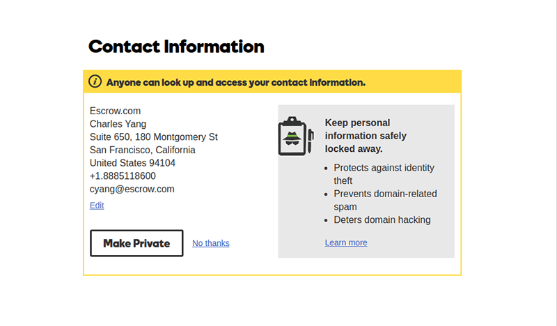 Verify the contact details are correct. (Your confirmation email to finalize your domain transfer will be sent to this email address)